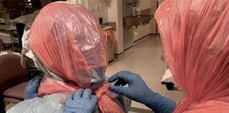 Médicos usan bolsas de basura en la cabeza para atender a...
