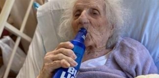 Abuelita vence al coronavirus y celebra con una cerveza fría
