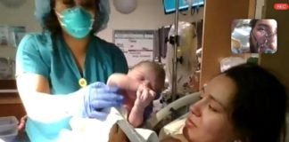 Enfermo de Covid-19 ve el nacimiento de su hijo a través...