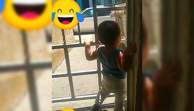 En la grabación se puede ver a un pequeño de aproximadamente tres años, parado en la puerta de su casa y apoyado de esta comienza a gritar por auxilio.